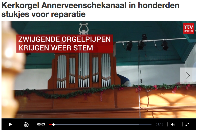 Op 25 april plaatst RTV Drenthe een artikel over het orgel. Tot aan de kerksluiting in de jaren zeventig werd het bespeeld. Het orgel vertoonde toen al serieuze defecten. Er is nooit geld geweest om het orgel in stand te houden.